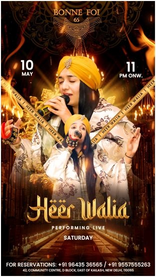 Bonne Foi 65, one of East of Kailash’s most vibrant dining and entertainment venues, is set to come alive with soulful rhythms and spiritual melodies as acclaimed Sufi singer “Heer Walia“ performs “live this Saturday evening“.